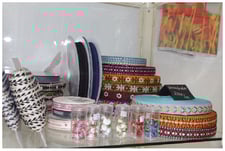 Einfassbänder, Samtbänder, Kordeln sowie dekorative Webbänder sind ebenso vertreten wie elastische Gummibänder für den Hosenbund.